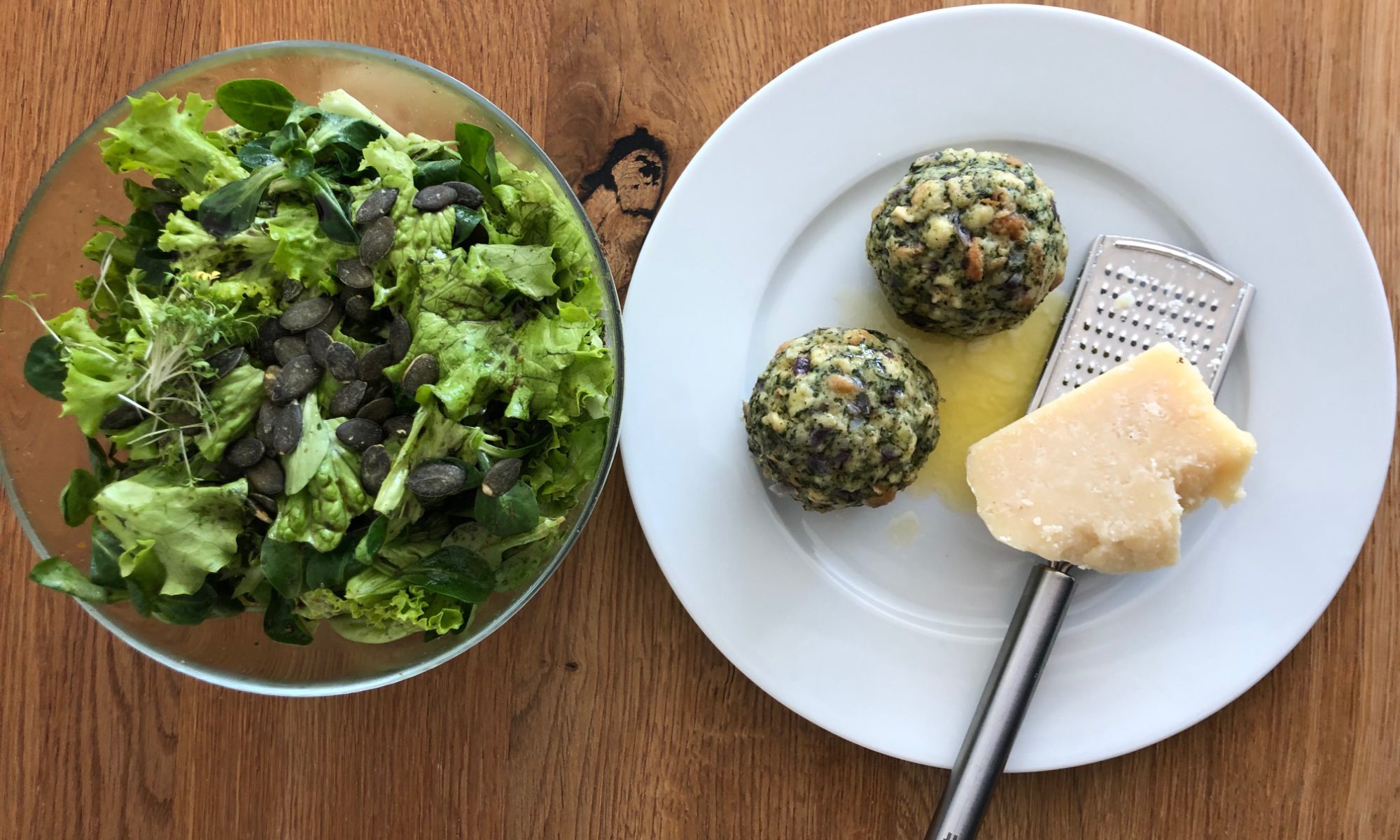 Die Semmelknödel mit zerlassener Butter erinnern mich an meine Kindheit zurück. Meine Variante mit Spinat hat damit einen etwas gesünderen Touch verliehen bekommen und schmeckt sogar noch besser, finde ich.